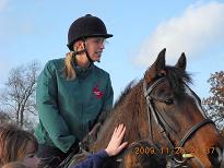 今日も一時間目はEquineのDutyを手伝ってからMarvinに乗って、上級生のクラスの教育実習の生徒になっての乗馬レッスンでした。今日の学生は3人が交代で教えてくれました。一人目の人の名前は聞かなかったので分かりませんが(Katie?)、あとの二人のうちの一人は先週も教えてくれた、Bryony(ブライアニィと発音するらしく本人は自分の名前が嫌いだと言っていました)というとても謙虚だけれど教え方は上手な女の子で、もう一人はBeckyというこれまた親しみ易い感じの女の子でした。このBeckyは顔だけは何故か見分け易い(多分日本人にもよくいそうな感じだからかも)ので、知っていました。今日は本当に基本の基本を身に付けさせる内容のもので、私には丁度有難いものでした。Trotで手綱を離し、指示に従って両手を頭や腰にのせたり、両手を広げて乗る練習でした。これはよく前田さんのところでもやった練習です。Beckyに「前に比べて姿勢が数段良くなって来た」と言われました。