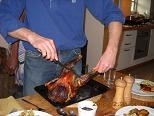 Marthaが私の持って行ったお好み焼きを食べながら料理が出来るのを待とう、と言って食べ初めて「おいしい!スターターに丁度良い」と言ってくれたので、嬉しかった。Fraserさんの料理は前回同様本当にすべて美味しかった。メニューは玉ねぎのタター(パイ皮の中に玉ねぎを入れてバターとお酢とお砂糖少々をかけてオーブンで焼いてひっくり返しcaramelized onionにしたもの(このひっくり返す方法で作るパイをフランス語でタターと言うのだそうだ)、昨日絞め殺したというFraserさんの所のローストチキンと付け合せの野菜、ベーコン、ポテト、それからデザートはクリスマスプディングだった。デザートを食べ終わってから、準備してきた「もみじ」の一人合唱をご披露した。