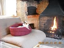 昼過ぎに暖炉で薪を燃やし始めるとBillieはホッとしたような表情で火の暖かさを感じるところにジッと落ち着き始めた。Marthaが言ってた通りストーブの暖かさが好きなようだ。またしばらくベッドでうたた寝を始めたみたいだ。