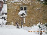 今BBCRadio4での放送で、この雪で野生の鳥が路上にまかれたGrit(塩入りの砂)で解けた雪の上に食べ物を見つけて食べている時に、クルマに気付かずに引かれてしまうというケースが多くなるので、懸念されているとのこと。食べ物不足で鳥たちはとても体力が鈍って来ているので、瞬間的に飛び立つエネルギーも無くなっている鳥が多いのだそうである。それから鳥の飲み水が凍ってしまっていて、脱水症状になるのだそうだ。それで個人の庭になるべくハイエネルギー・バードフードを吊るしてあげるようにと呼びかけていた。こういうことをラジオで放送するということも、ちょっと日本では考えられないように思う。見ているとこの庭に来ているハトが実に見事にくちばしで雪をかき飛ばしながら、雪の下に埋まっている餌を捜しながら食べている。その様子は感動的と言ってもいいくらいだ!