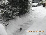 ニュースにはどこかの村のお店が出て、この雪の中を買いに来た人が大勢いたために、食料品が売り切れ状態だと、空っぽになったパンの籠を写していた。FinstockのVillageStoreはどうなのだろう、、、。そういえばこの雪の中を歩いて何処かへ行く人(または行って来た人)が案外通るのだ。何をしに何処へ行く人なんだろう、まさか散歩に出かけた人じゃないとは思うのだけど。いつも木曜日の早朝に集めに来るゴミ収集車も、今朝は来なかったようだ。当然、郵便配達も来ない。ジロタンがFraserさんに出した手紙も、この分じゃFraserさんたちが出かけてしまってから届くことになるだろう。(こないだ日高マムズのよしこさんから来たカードが日付を見たら27日に出したもので、ここに着いたのが今週の月曜日(4日)だったから、ジロタンは確か手紙を28日に出した筈なので。火曜日に雪が降る前に配達されていたとしたら、水曜日に雪かきをした時にFraserさんは何か言った筈だから、何も言わなかったということは、雪の前に受け取っていないということだ。)
