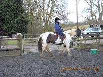 1時35分頃にPigeonHouseへ行く為に家を出る。あられが少し降って来る。今日はHelenにWitneyで買って来たThorntonのチョコレートを持って行ってあげる。How sweet!と言ってすごく喜んでくれた。チョコレートは大好きだそうだ。Maggyに乗って今日もCanterの練習をやり、そのあと丸い円周軌道の手前をやってみるよう言われる。常に視線は行く方向の先を見る必要があるのだとのこと。それから横木が3本地面に置いてあるところを馬でまたいで横断する練習を少しした。