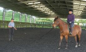 今日は10時にPigeonHouseの予約をしてあるので、出かける。今日はPaddyに乗って雨の中の練習となる。Wslk,RisingTrot,SittingTrot,StandingTrot,20mCircle,Canterと一通りやる。Helenに言われたのは、私は右に傾いた感じで乗っているのと、左の脚が右に比べて弱いので、どうしても馬が左へ左へ寄って来てしまうので、もう少し意識的にLean leftになり、むしろ左に重心を置いて乗るようにした方が良いとのこと。自分でも左足が付け根の所から力がしっかり入らず、弱いということは気がついていたのだが、外から見てもきっとそれが見えているのだろう。「もっと自分で左足を強くする工夫をするように」とHelenに言われる。それでも少しずつキャンターが出て続くようにはなって来ているように感じる。