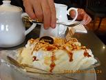 老人達が沢山居てまるでU3Aのランチミーティングのように見えた。時間がギリギリだったけれど、食べられるとのことなので、席に座りワインを注文してからCarveryで料理を盛ってもらって、席に戻って食べる。ビーフも柔らかくて、味もかなかな美味しい。私はデザートにレモンメレンゲを食べ、ジロタンは私の為にチョコレートチーズケーキを選んで席に持って来る。このケーキがリッチ過ぎて、どうにも全部たべられないのでホイルに包んでもらい持ち帰る。ここも美味しいレストランの一つに入る所だと思う。