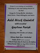 家に帰ってジロタンとSkypeで話をしてから、1時半頃にJulianのパブにSund ayLunchを食べに行きました。いつもながら非常に美味しく満足しました。Waitroseの駐車場に戻る途中、Witneyのメソジスト教会のドアにコンサートのお知らせが出ているのを見つけ、「ジロタンが一緒だったら絶対に聴きに来ようと思うだろうな、、、」と思うような内容のものだったので、写真を撮って来ました。来週の土曜日(17日)夜7時半からのようです。(写真添付)